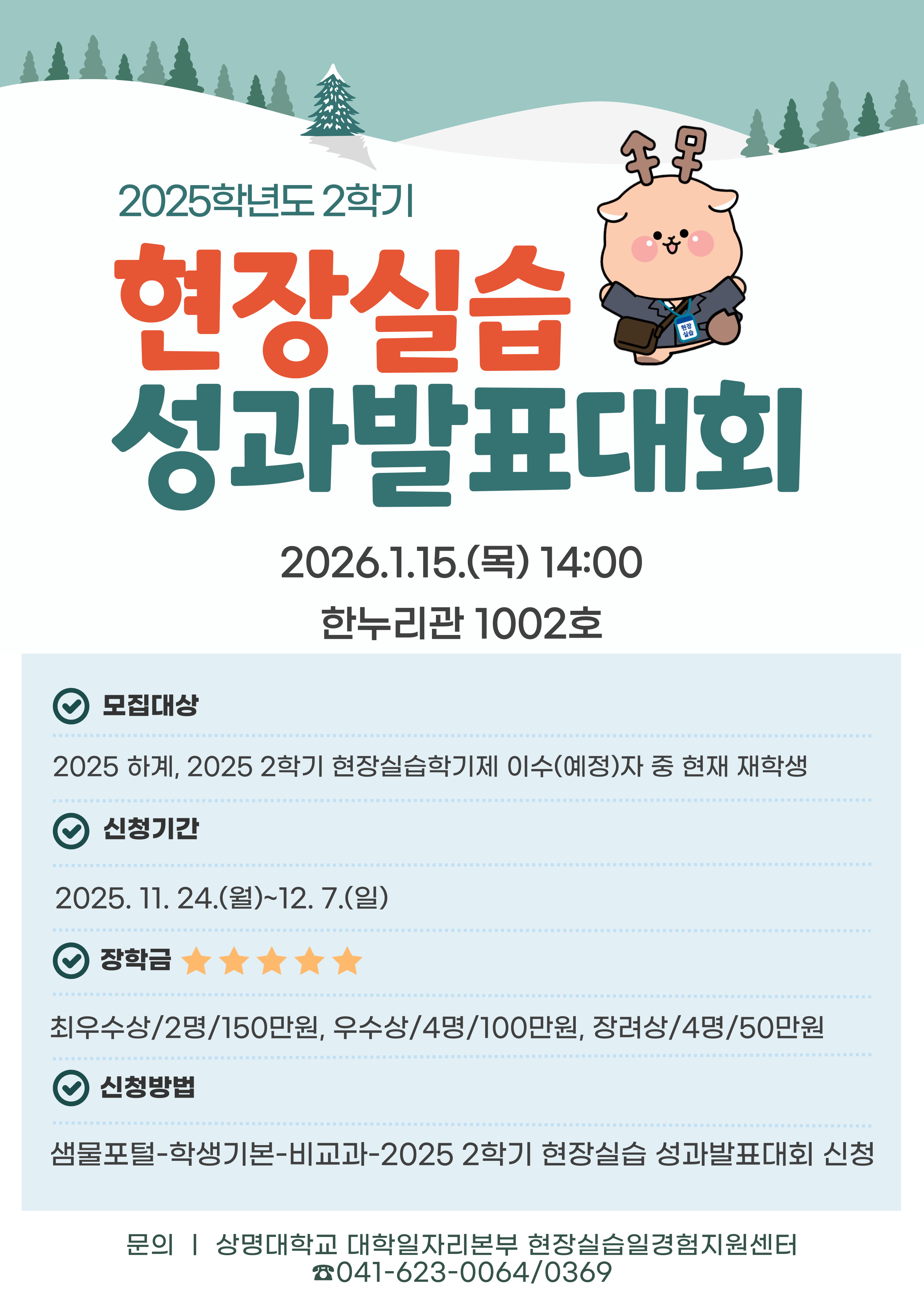 ※신청방법: 샘물포털-학생기본-비교과-2025학년도 2학기 현장실습 성과발표대회 선택 후 신청서 및 발표자료 업로드